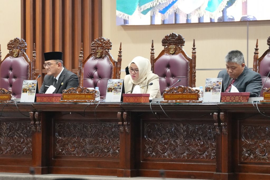 Rapat paripurna dipimpin oleh Wakil Ketua DPRD Sumsel, Hj. Kartika Sandra Desi, SH, MM, didampingi Wakil Ketua DPRD, H.M. Giri Ramanda N Kiemas, SE, MM.