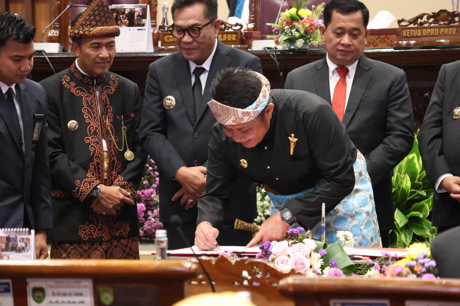 Usai paripurna dilakukan penandatanganan nota kesepakatan (MoU) antara Badan Gizi Nasional Dengan 17 Bupati/Walikota Se Sumsel tentang Sinergi dan Kerjasama dalam kegiatan program Makan Bergizi Gratis (MBG).