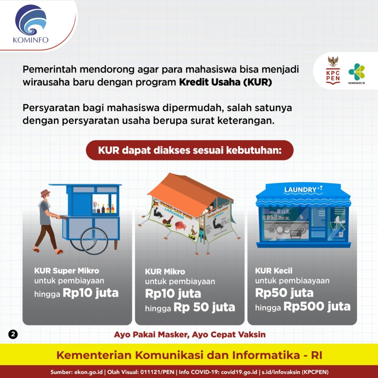 Pingintau.id, Pemerintah mendorong agar para mahasiswa bisa menjadi wirausaha baru dengan program Kredit Usaha (KUR).