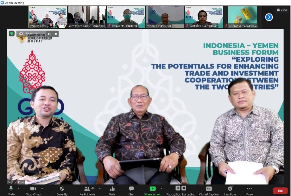 Pingintau.id, Muscat, Oman – Dalam rangka meningkatkan perdagangan dan investasi Indonesia dan Yaman, KBRI Muscat menyelenggarakan forum bisnis bertemakan “Exploring the Potentials for Enhancing Trade and Investment between the Two Countries” secara daring (03/03/2022).