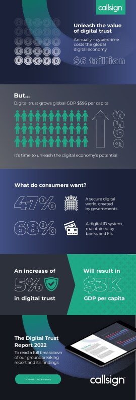 Temuan tersebut terungkap dalam The Digital Trust Index: Nilai Digital Trust Report, yang merupakan penelitian seminal, yang dilakukan oleh Callsign, pelopor kepercayaan digital, dan Center for Economics and Business Research (Cebr), ke dalam sikap dan pendorong digital kepercayaan di seluruh ekonomi modern. Temuan ini signifikan jika ekonomi global mengarah ke resesi karena berinvestasi dalam membangun kepercayaan digital ke dalam ekonomi digital berpotensi menghasilkan pertumbuhan dan produktivitas.