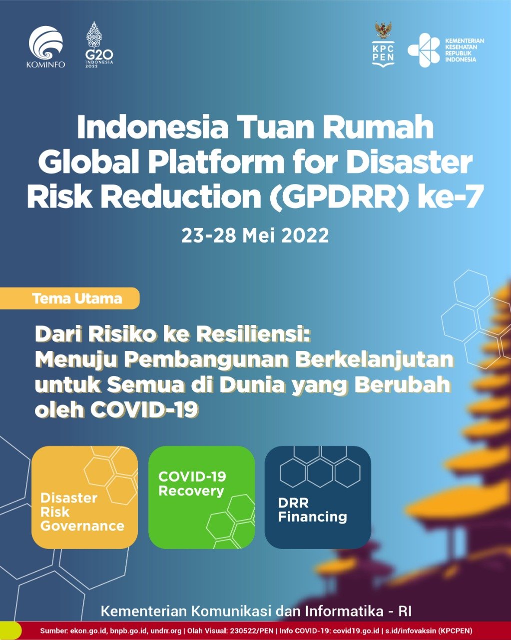 Pingintau.id -Indonesia dipercaya menjadi tuan rumah penyelenggaraan Global Platform for Disaster Risk Reduction (GPDRR) 2022 di Bali untuk berkontribusi dalam menciptakan dunia yang lebih baik melalui pengarusutamaan Pengurangan Risiko Bencana, dari topik tata kelola dan pembiayaan risiko bencana serta pemulihan COVID-19.