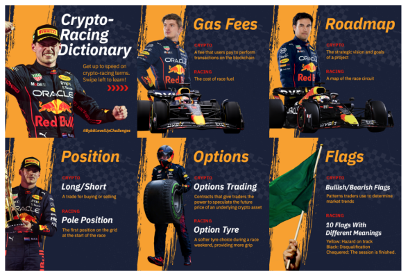 Ternyata kedua industri ini memiliki banyak kesamaan. Kamus Crypto-Racing, dibuat oleh Bybit untuk membantu penggemar F1 dan penggemar crypto sama-sama memahami istilah relevan yang berlaku di dunia crypto dan balap.