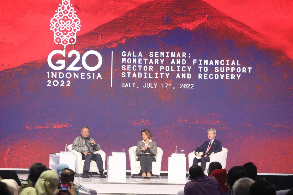 Pingintau.id, Presidensi G20 Indonesia Jalur Keuangan senantiasa mendorong pemulihan ekonomi yang lebih kuat dengan merespons lima isu strategis global. Respon terhadap lima isu strategis tersebut diwujudkan dengan i) pembentukan sistem kolaborasi dan kerjasama global untuk mengatasi tantangan kerawanan pangan (food insecurity) ii) menjaga stabilitas dan memperkuat pemulihan ekonomi melalui bauran kebijakan iii) penguatan kebijakan moneter serta makroprudensial yang didukung koordinasi melalui reformasi struktural iv) rancangan Central Bank Digital Currency (CBDC) untuk interoperabilitas dan pembayaran lintas-batas, serta v) mengembangkan kerangka untuk pembiayaan transisi menuju net zero emission. Demikian mengemuka dalam Gala Seminar “Monetary and Financial Sector Policy to Support Stability and Recovery”, sebagai side event yang yang menutup seluruh rangkaian side event G20 Finance Track: Finance and Central Bank Deputies (FCBD) dan 3rd Finance Ministers and Central Bank Governors Meeting (FMCBG) di Nusa Dua, Bali (17/7).