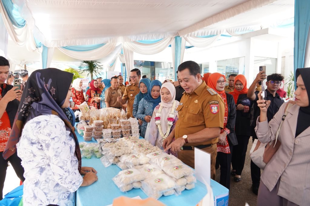 Selanjutnya, Setelah pembukaan, Gus Haris bersama dengan Ketua TP PKK Banyuasin berkeliling untuk menyapa pedagang dan membeli berbagai produk UMKM