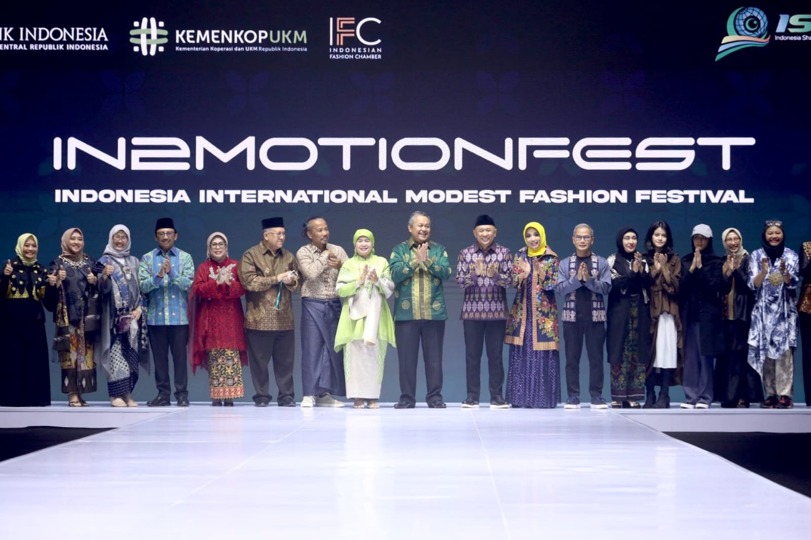 Gubernur Bank Indonesia, Perry Warjiyo dalam sambutan pembukaannya menyampaikan 3 esensi utama dalam penyelenggaraan IN2MOTIONFEST 2022 (6/10). Pertama, pentingnya peran perempuan dalam memajukan UMKM, dimana dua pertiga UMKM digerakkan oleh kaum perempuan. Memajukan modest fashion secara simultan juga memajukan ekonomi perempuan dan ekonomi keluarga untuk membentuk pemimpin-pemimpin Indonesia. Kedua, IN2MOTIONFEST juga diharapkan akan menjadi“The Biggest International Modest Fashion Festival” yang sejajar dengan event fashion berskala internasional. Hal ini dapat dilakukan antara lain melalui penguatan branding modest fashion Indonesia, melahirkan desainer dan brand yang dikenal serta berdaya saing global, serta meningkatkan kapasitas dan linkage antar pelaku usaha baik domestik dan global. Ketiga, penyelenggaraan IN2MOTIONFEST akan rutin dilaksanakan setiap tahunnya yang menjadi rangkaian perhelatan ISEF. Hal ini merupakan wujud komitmen untuk mengembangkan ekosistem modest fashion Indonesia.