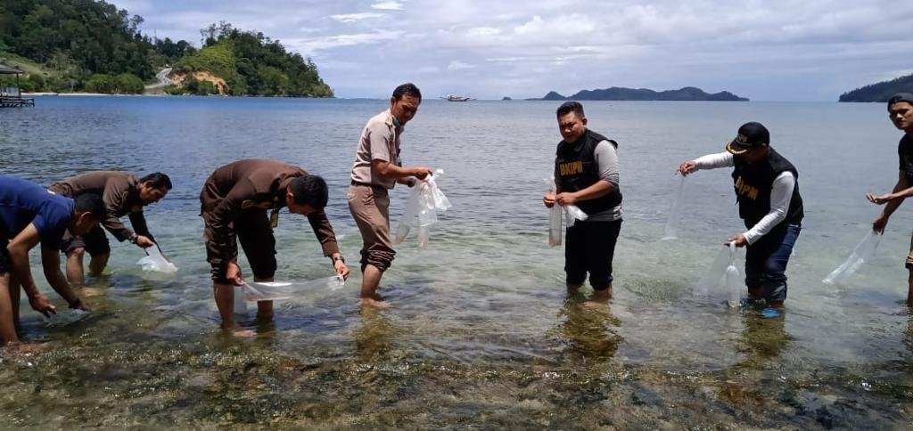 Pingintau.id – Ribuan benur atau benih bening lobster (BBL) hasil tangkapan dilepasliarkan di kawasan Pantai Manjuto-Sungai Pinang, Kabupaten Pesisir Selatan, Sumatera Barat pada Jumat, 8 April 2022. Lokasi ini dipilih berdasarkan rekomendasi Direktorat Jenderal Pengelolaan Ruang Laut (Ditjen PRL) terkait habitat yang cocok bagi kelangsungan hidup BBL.