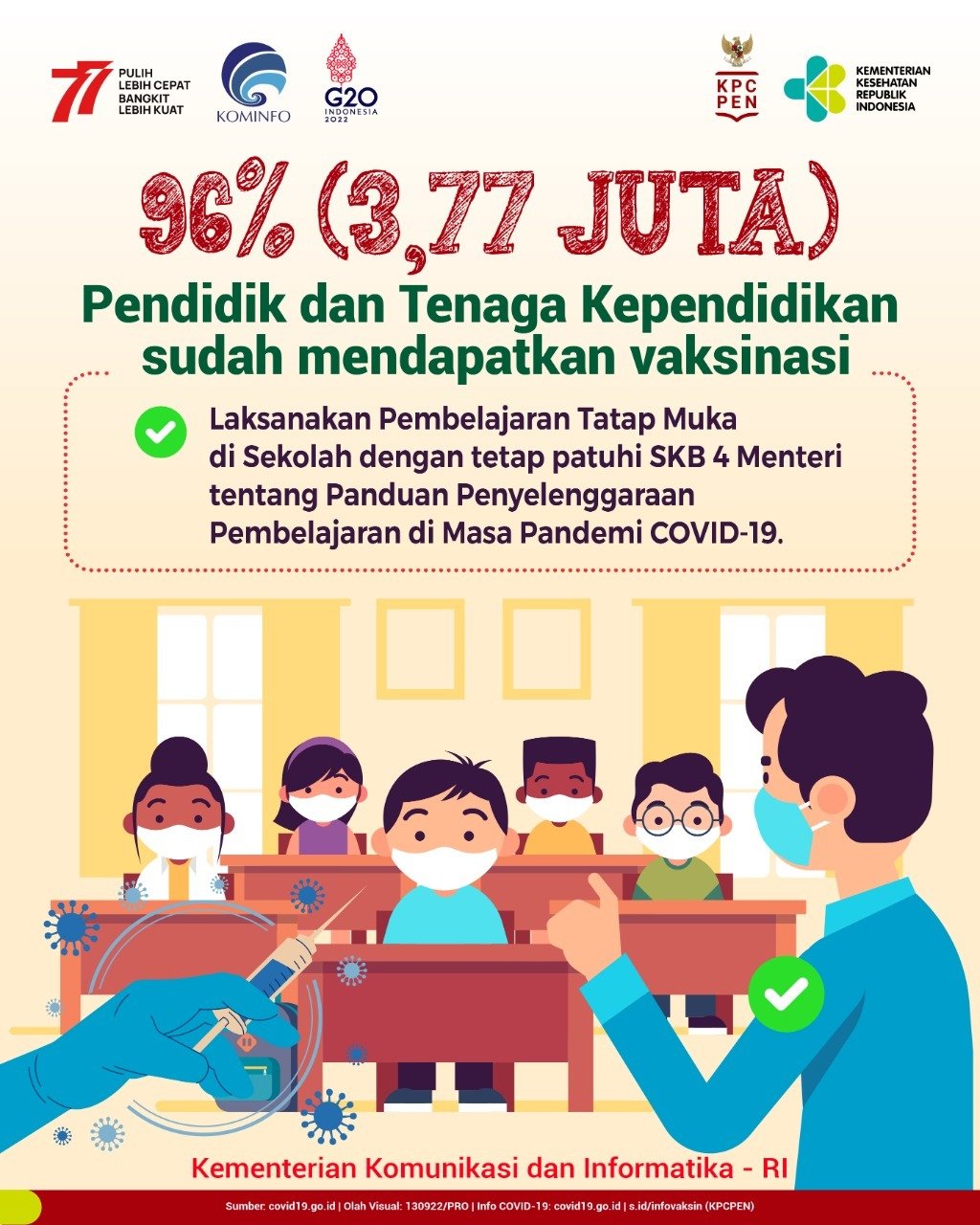 Pingintau.id,Update! 96% (3,77 juta) Pendidik dan Tenaga Kependidikan sudah mendapatkan vaksinasi.