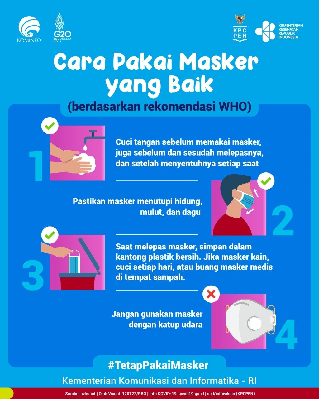 WHO merekomendasikan cara Pakai Masker yang baik, yakni dengan: