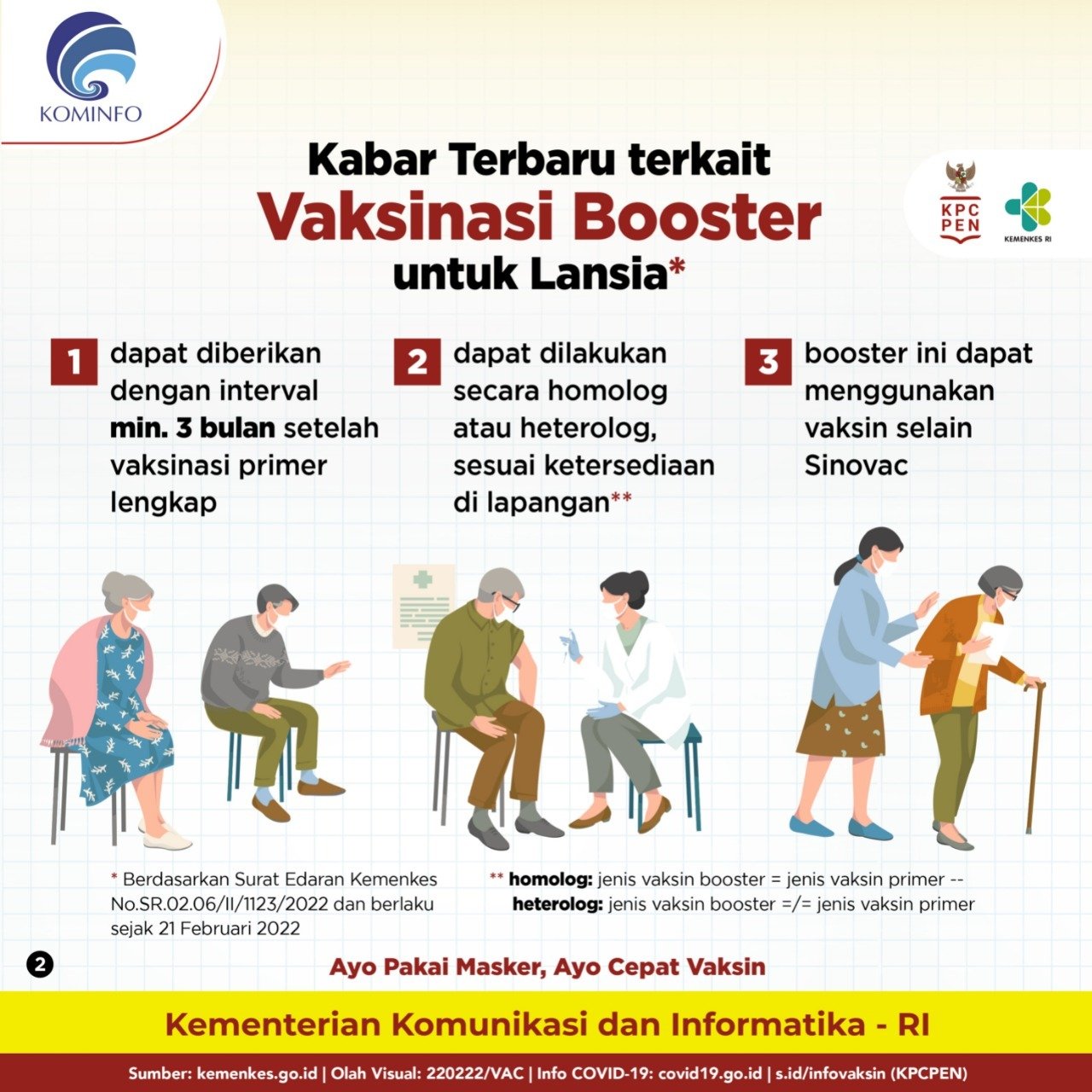 Pingintau.id, Kementerian Kesehatan merilis ketentuan terbaru terkait dengan vaksinasi booster pada lansia.