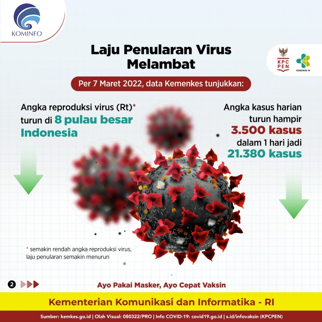 Pingintau.id, Data Kementerian Kesehatan per 7 Maret 2022, menunjukkan kaju penularan virus COVID-19 yang melambat.