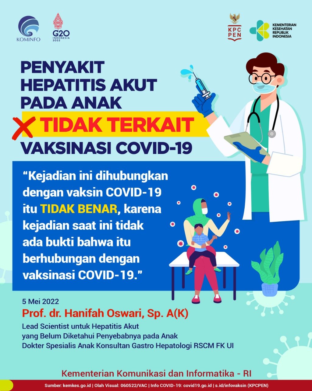 Pingintau.id, Penyakit hepatitis akut pada anak yang belum diketahui penyebabnya tidak berkaitan dengan vaksinasi COVID-19.