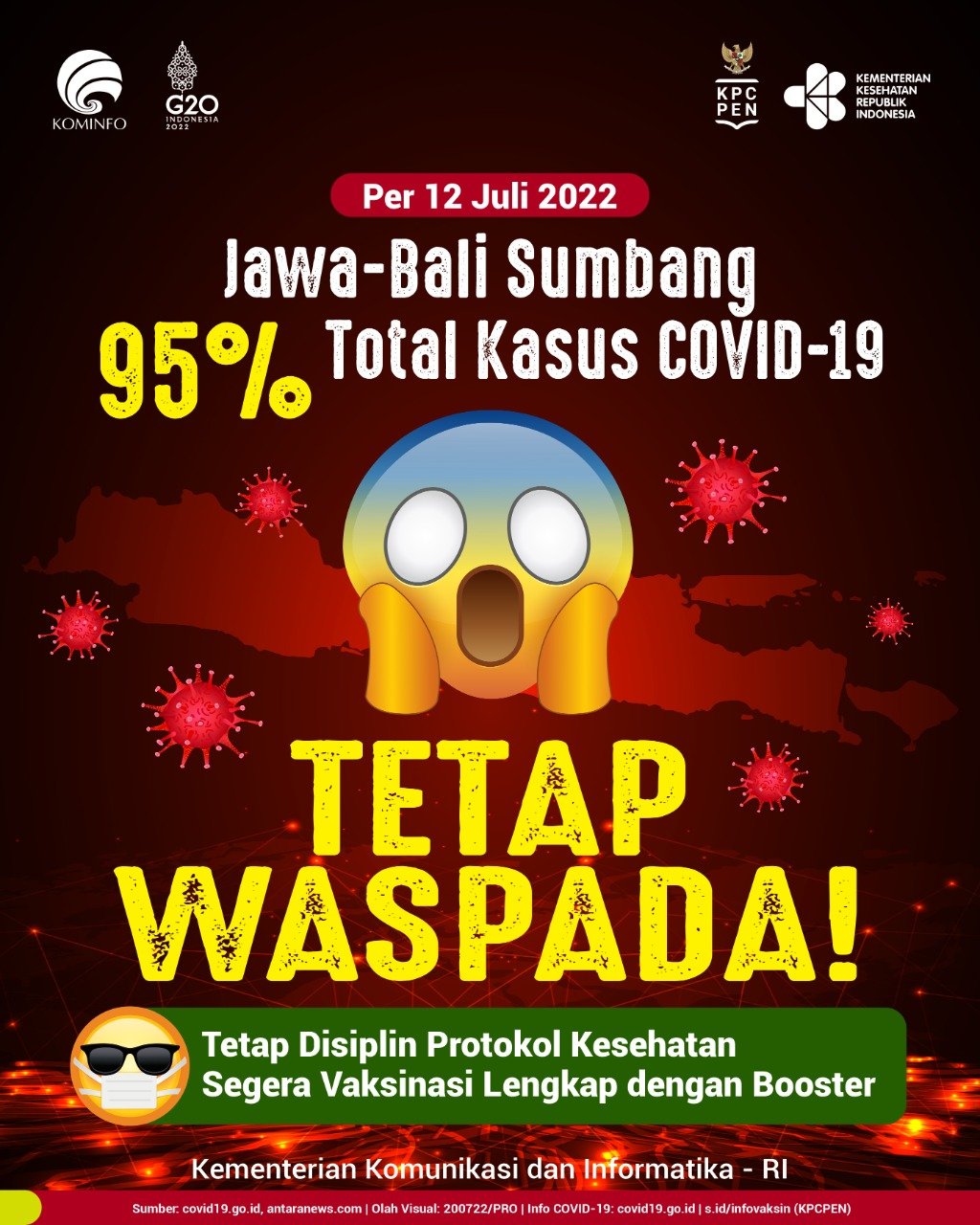 Pingintau.id, Oh tidak! Kenaikan kasus kembali terjadi, bahkan per 12 Juli 2022 lalu Jawa-Bali Sumbang 95% Total Kasus COVID-19 😱