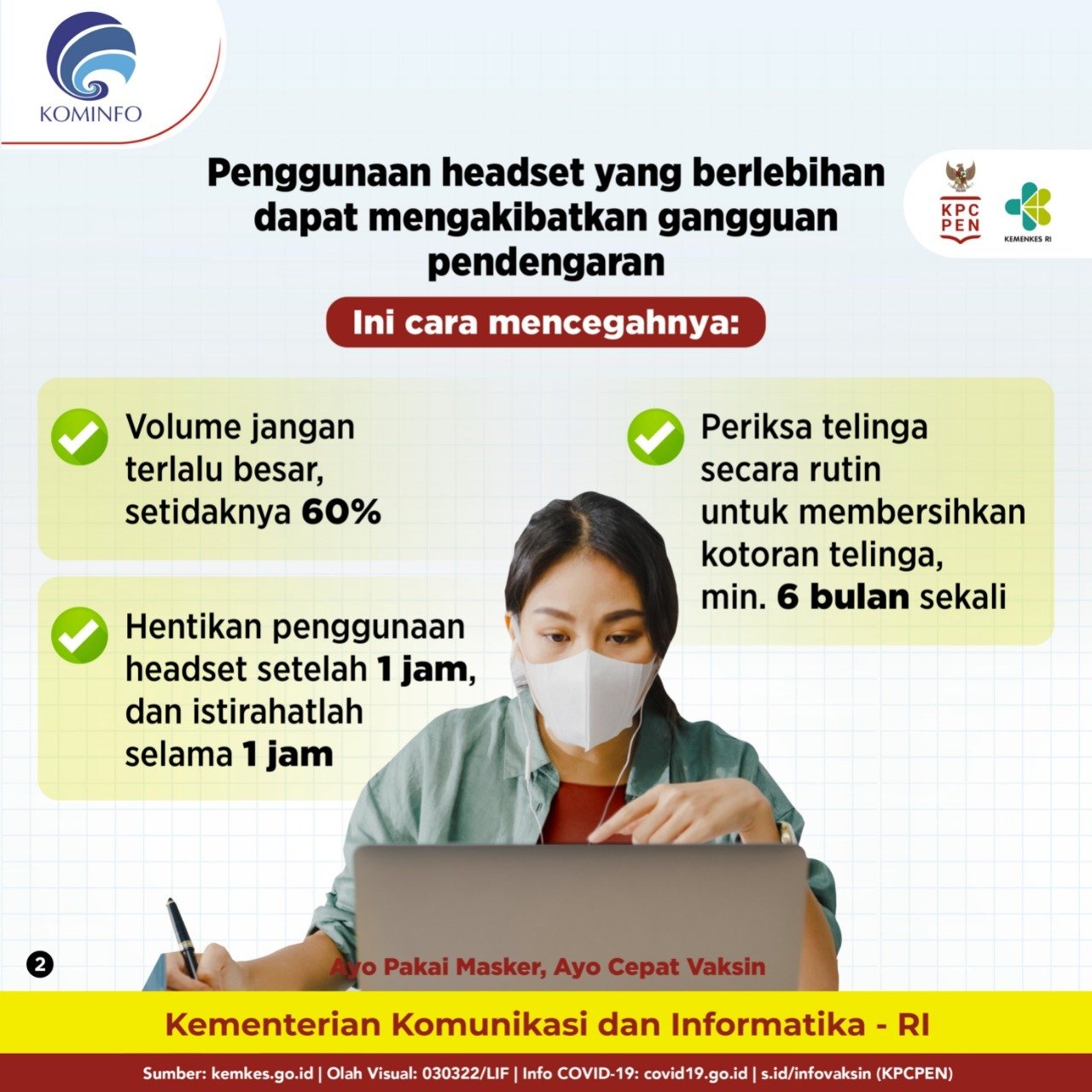 Untuk mencegahnya bisa melakukan beberapa hal, seperti menghindari volume besar (cukup di 60%), hentikan penggunaan headset setelah 1 jam dan istirahatlah selama 1 jam.