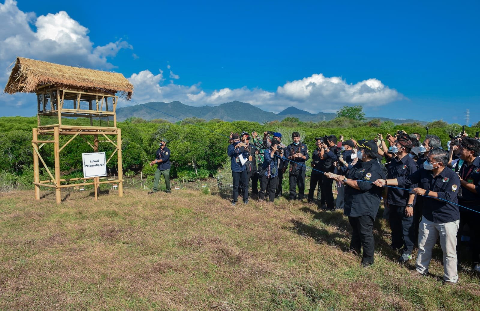 Pingintau.id, Dalam Puncak peringatan Hari Konservasi Alam Nasional (HKAN) tahun 2022, Menteri Lingkungan Hidup dan Kehutanan Prof. Siti Nurbaya dan Wakil Menteri Lingkungan Hidup dan Kehutanan Alue Dohong, didampingi Plt. Dirjen Konservasi Sumber Daya Alam dan Ekosistem KLHK Bambang Hendroyono melepasliarkan 108 ekor Curik Bali (Leuchopsar rothschildi) ke habitat alaminya (2/9). Pelepasliaran ini dilakukan di tiga lokasi yaitu Pantai Karangsewu (14 ekor), Teluk Brumbun (80 ekor), dan Labuhan Lalang (14 ekor), Provinsi Bali.
