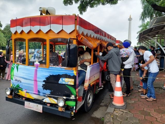 Bahkan banyak pengunjung yang mengantri naik kereta wisata Monas untuk menuju ke loket masuk ke Puncak Monas. Walaupun Akbar, driver kereta wisata monas telah memberitahukan melalui speaker bahwa tiket untuk naik ke Puncak Monas sudah habis, tinggal tiket untuk ke Museum Sejarah dan Plataran Cawan.