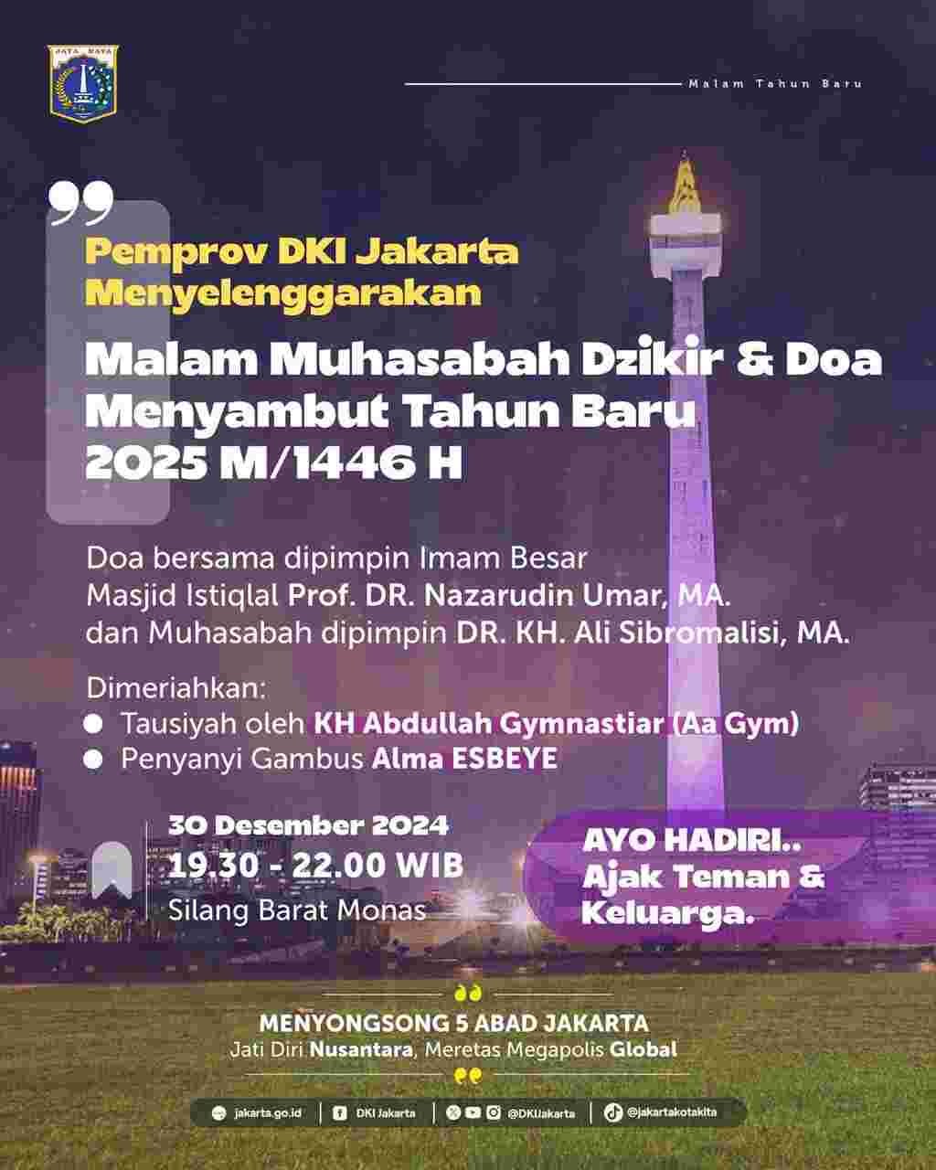 Dengan berbagai persiapan yang matang, Pemprov DKI Jakarta berharap Malam Muhasabah ini dapat menjadi acara yang rutin setiap tahunnya, membawa keberkahan dan kebersamaan bagi seluruh warga Jakarta dalam menyambut tahun baru.(***)