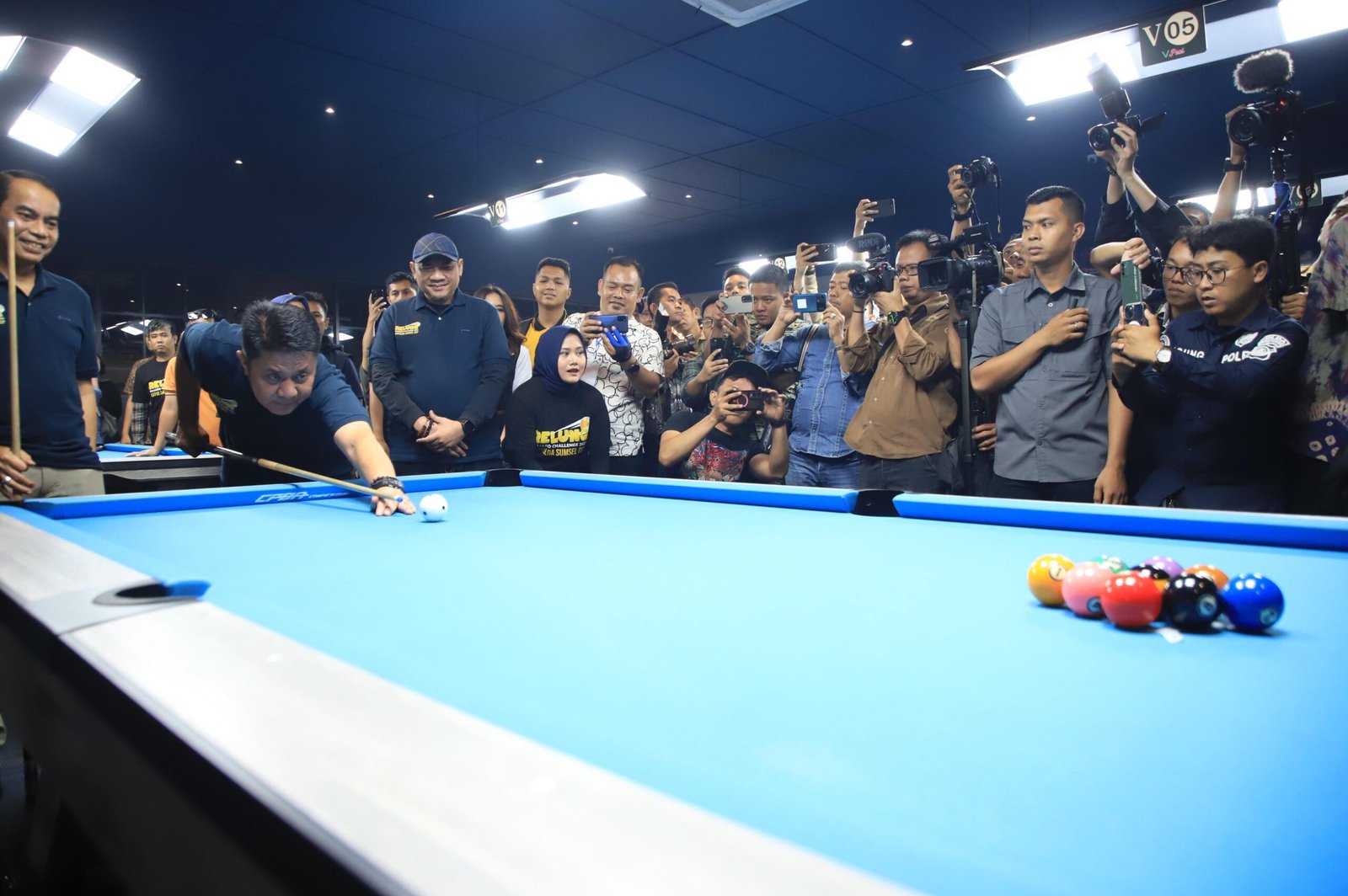 Gubernur Herman Deru dan Wagub Cik Ujang Ikuti Pertandingan Eksibisi Pada Pembukaan Relung Billiard Challenge 2025 Kapolda Sumsel Cup
