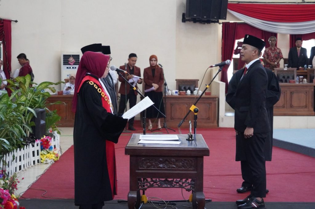 PINGINTAU.ID, PANGKALAN BALAI- Penjabat (Pj) Rapat Paripurna Dewan Perwakilan Rakyat Daerah (DPRD) Kabupaten Banyuasin rapat paripurna dalam rangka Pengucapan Sumpah dan Janji Pimpinan Defenitif DPRD Kabupaten Banyuasin masa jabatan Tahun 2024-2029 di Gedung Paripurna DPRD Kabupaten Banyuasin. Rabu 9 Oktober 2024.