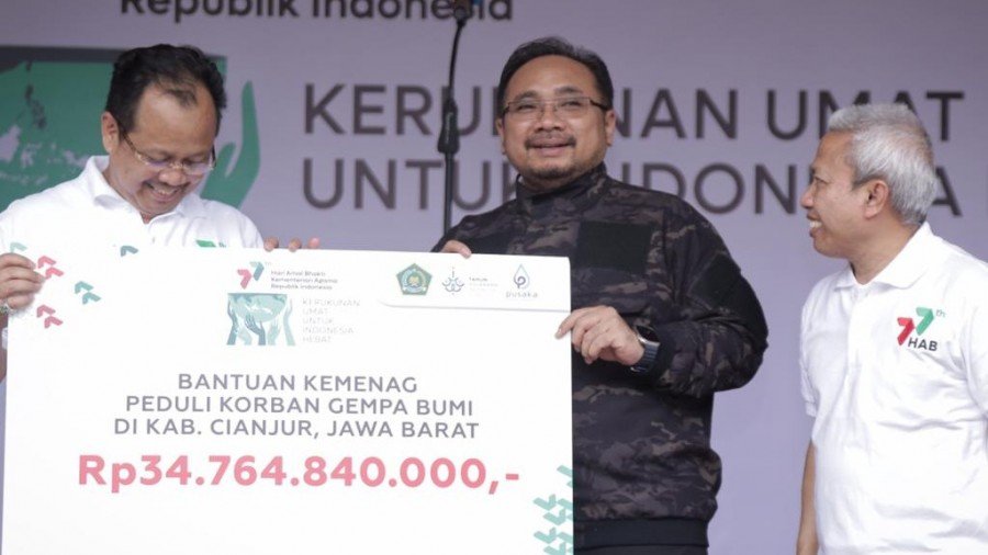Pingintau.id, Jakarta – Aparatur Sipil Negara (ASN) Kementerian Agama menyerahkan donasi senilai Rp 34.764.840.000,- untuk penyintas gempa bumi di Kabupaten Cianjur, Jawa Barat.