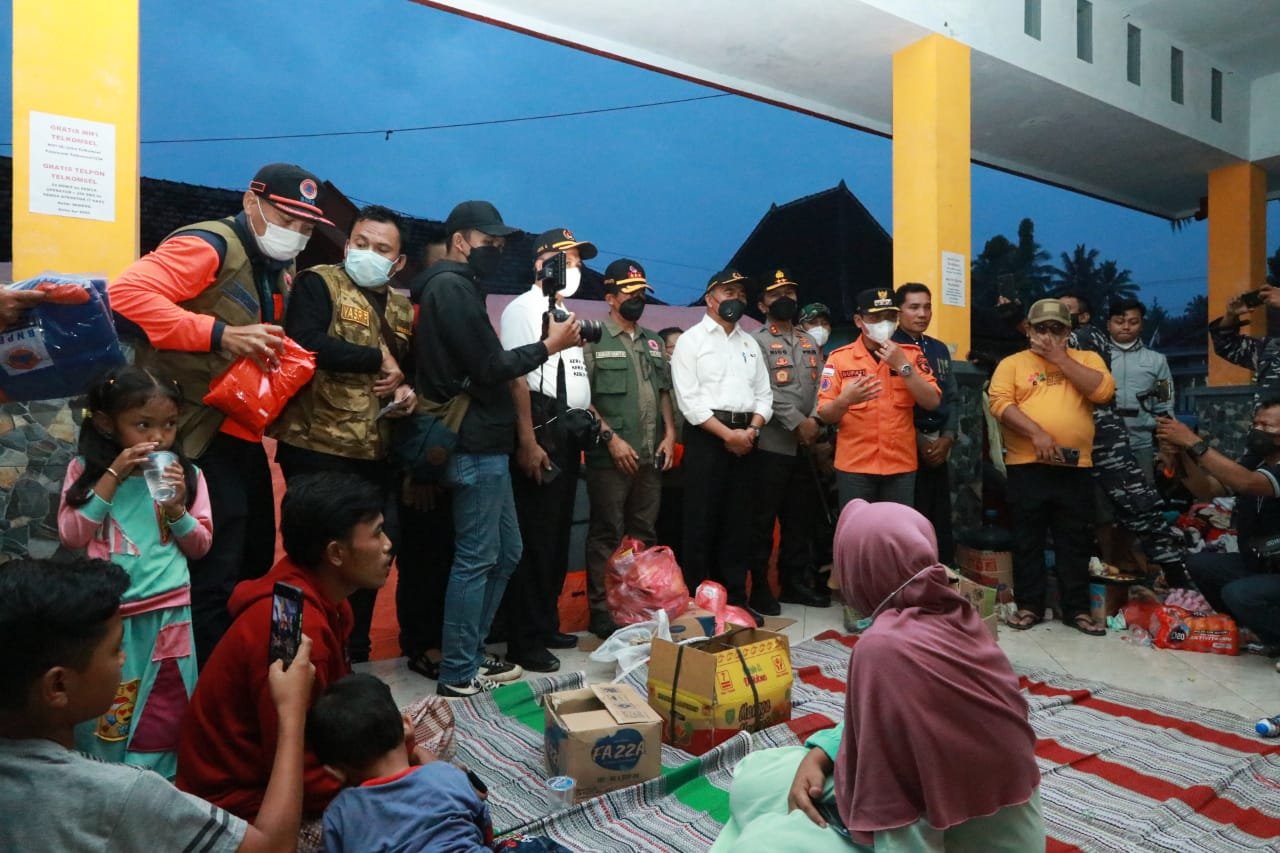 Kapolda Jatim Irjen. Pol. Nico Afinta, Gubernur Jawa Timur Khofifah Indar Parawansa bersama Pejabat Utama Polda Jatim dan Forkopimda Kabupaten Lumajang mendampingi kunjungan Panglima TNI, Kepala BNPB, Menko PMK dan Mensos, untuk melakukan penanganan korban erupsi gunung Semeru.