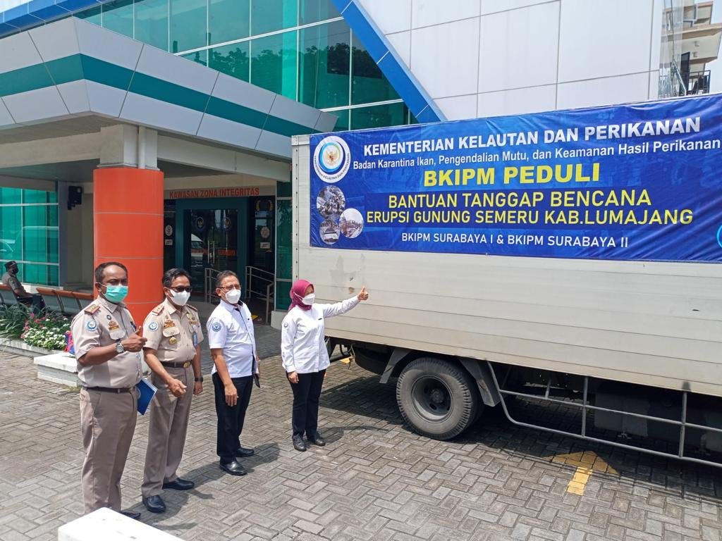 Pingintau.id, Kementerian Kelautan dan Perikanan (KKP) melakukan aksi solidaritas untuk korban erupsi gunung Semeru di Kabupaten Lumajang, Provinsi Jawa Timur. Diikoordinir langsung oleh Balai Karantina Ikan, Pengendalian Mutu dan Keamanan Hasil Perikanan (Balai KIPM) Surabaya I dan II, KKP membagikan paket pangan dan kebutuhan lainnya untuk masyarakat terdampak bencana. Paket bantuan ini merupakan wujud kepedulian pegawai BKIPM dan pengguna jasa KIPM terhadap para korban erupsi gunung Semeru.