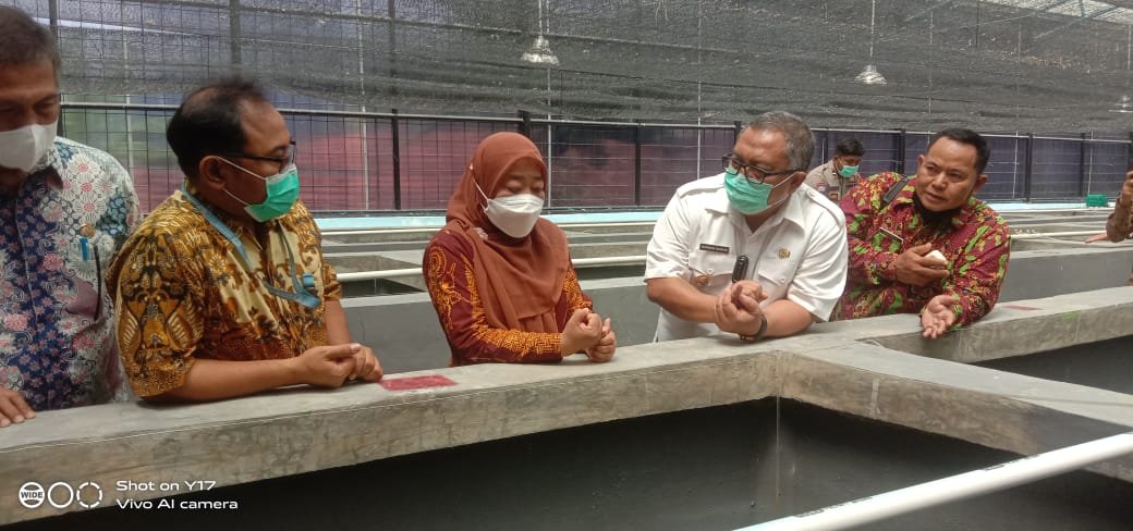 Kepala Pusat Riset Perikanan (Pusriskan), Yayan Hikmayani; bersama dengan Bupati Sukabumi, Marwan Hamami , dan National Project Manager Proyek FAO IFish, Sudarsono, mengunjungi lokasi demonstration site IFish sekaligus meresmikan unit pendederan sidat untuk memperkuat kerja sama pengelolaan perikanan darat, di BBI Tonjong, Palabuhanratu, Kamis, 16 Desember 2021. Kegiatan ini dimaksudkan untuk meninjau hasil siklus pertama demonstrasi pembesaran sidat. Diketahui bahwa upaya yang telah dilakukan sebelumnya, berhasil meningkatkan survival rate benih ke fase anakan hingga 60 persen.