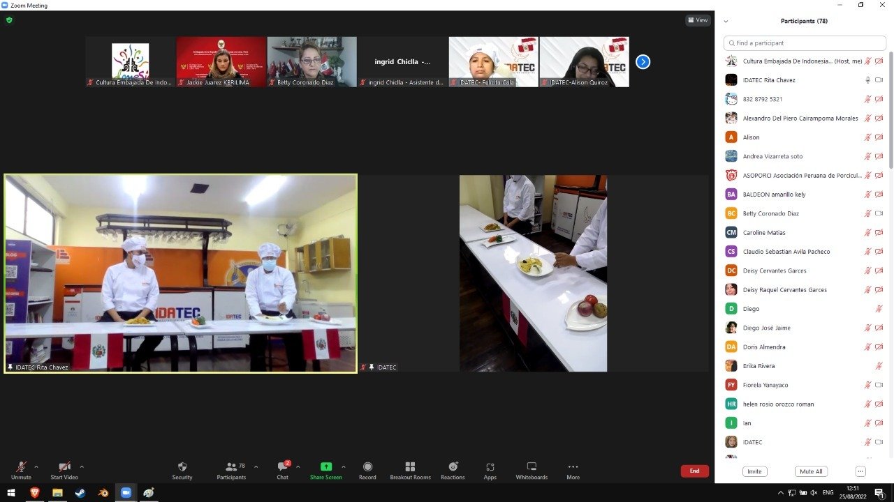 Kegiatan diadakan secara daring dan diikuti 81 orang warga kota Lima yang berprofesi antara lain sebagai ibu rumah tangga, siswa IDATEC (lembaga pendidikan khusus gastronomi dan catering) serta alumni kelas Bahasa Indonesia bagi Penutur Asing (BIPA).