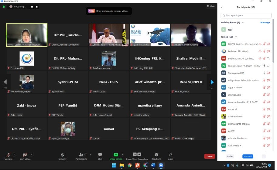Pingintau.id, Sebagai tindak lanjut Peraturan Pemerintah Nomor 21 Tahun 2021, dan Peraturan Menteri Kelautan dan Perikanan Nomor 28 Tahun 2021 tentang Penyelenggaraan Penataan Ruang, Kementerian Kelautan dan Perikanan (KKP) melalui Direktorat Jenderal Pengelolaan Ruang Laut (Ditjen PRL) melakukan konsolidasi bersama dengan Direktorat Jenderal Migas Kementerian ESDM (2/2/2022).
