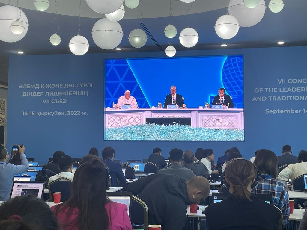 Pingintau.id, Kazakhstan, Nur Sultan – Kongres ke-7 Pemimpin Dunia dan Agama Tradisional (Congress of Leaders of World and Traditional Religion) dilaksanakan di ibu kota Kazakhstan, Nur Sultan pada hari Rabu dan Kamis, (14-15/09/2022). Kongres yang diadakan di Istana Kemerdekaan ini dihadiri sekitar 100 delegasi dari 50 negara, termasuk pemimpin spiritual Katolik Paus Fransiskus, Imam Besar Al-Azhar Ahmed El-Tayyeb, Kepala Ashkenazi Israel Rabbi David Lau dan Ketua Umum Pengurus Besar Nahdlatul Ulama (PBNU) KH Yahya Cholil Staquf.