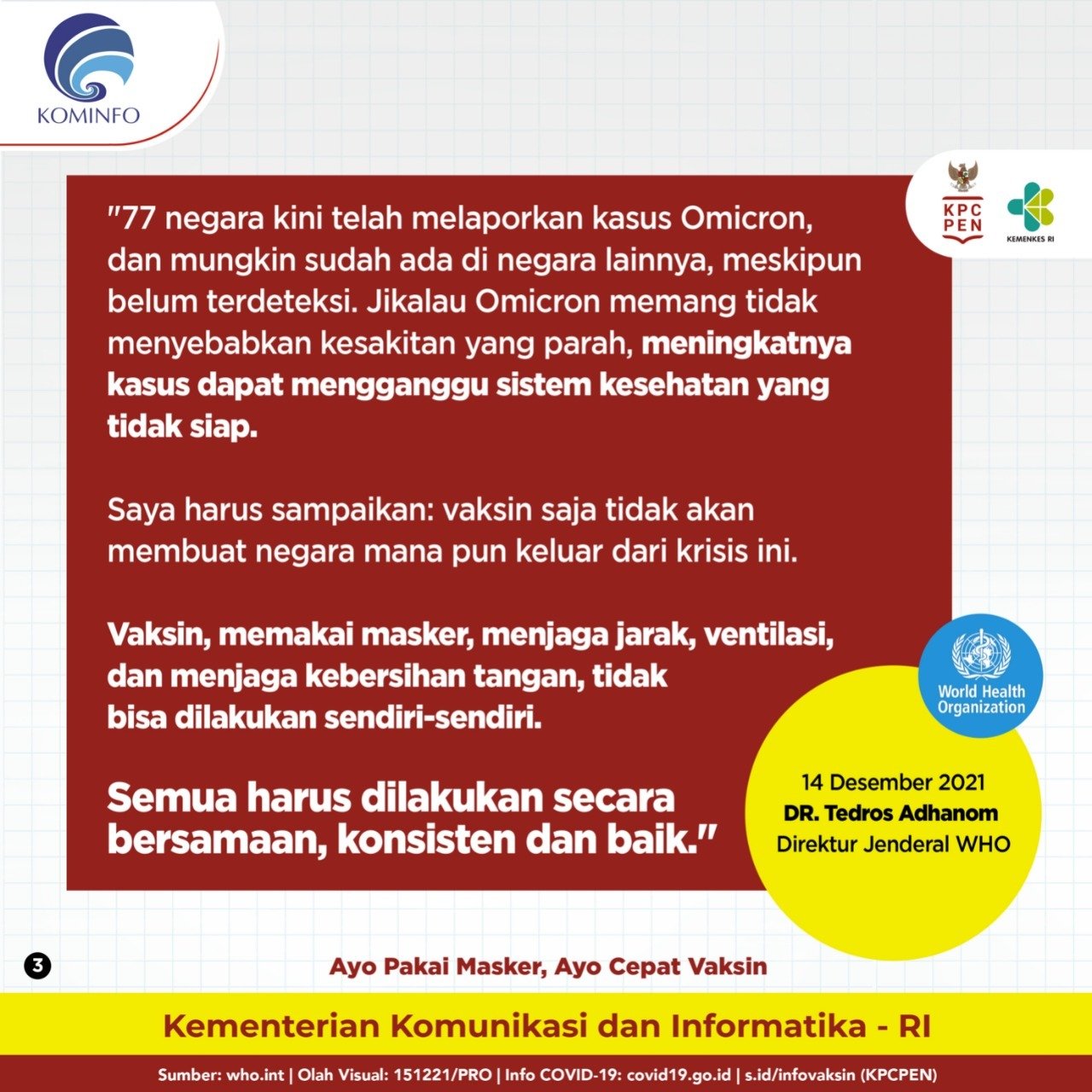 Mari bersama-sama lakukan semua tindakan ini demi melindungi diri selama pandemi COVID-19, dan mencegah penyebaran varian Omicron.