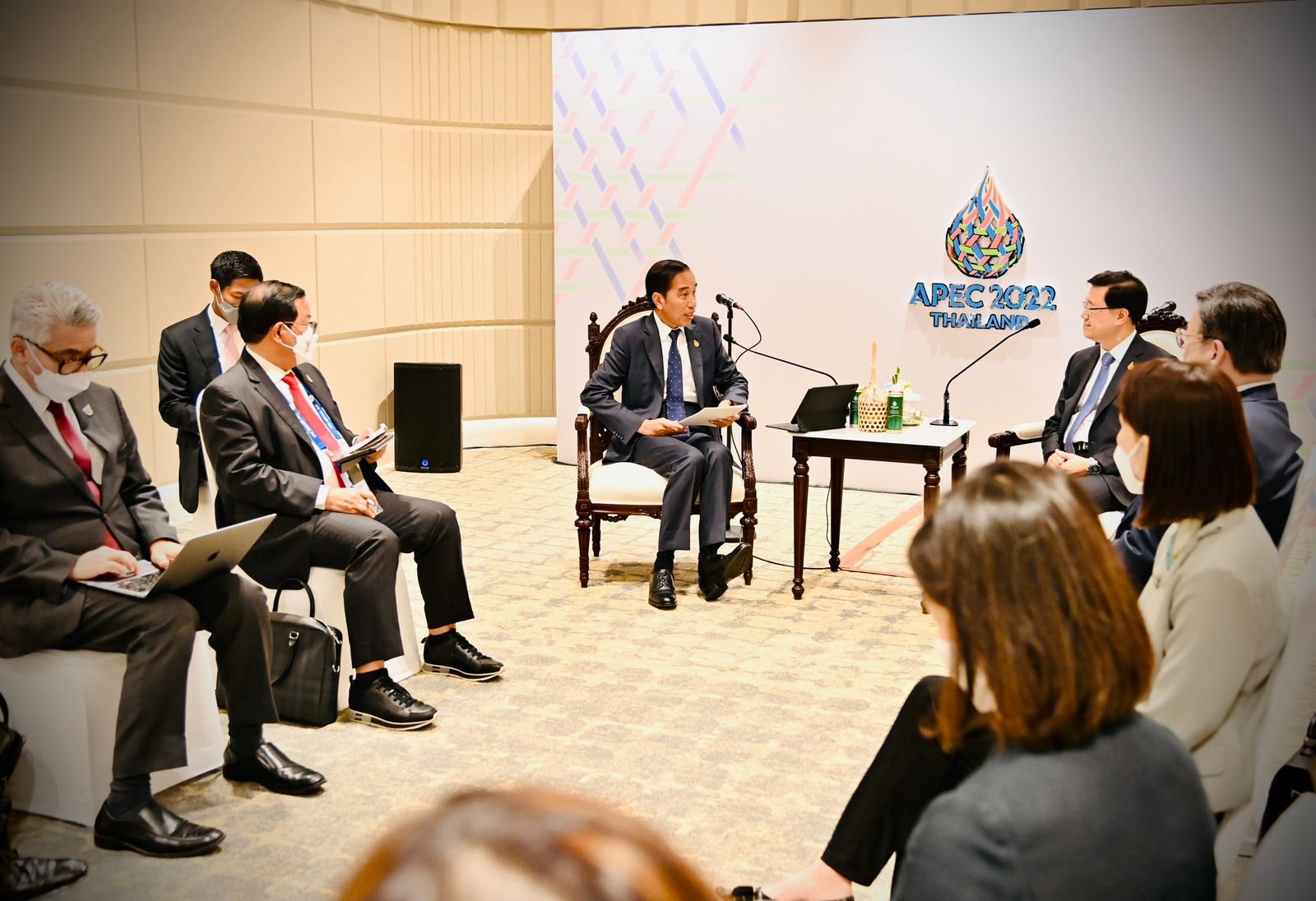 Pingintau.id, Bangkok, Thailand – Presiden RI Joko Widodo (Jokowi) melakukan pertemuan dengan Chief Executive Daerah Adminitrasi Khusus Hong Kong John Lee di sela pertemuan pemimpin ekonomi APEC di Queen Sirikit National Convention Center, Bangkok, Jumat (18/11/2022).