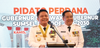 Gubernur Sumsel, H. Herman Deru dan Wakil Gubernur Sumsel, H. Cik Ujang menyampaikan pidato perdana mereka yang penuh semangat dan harapan.