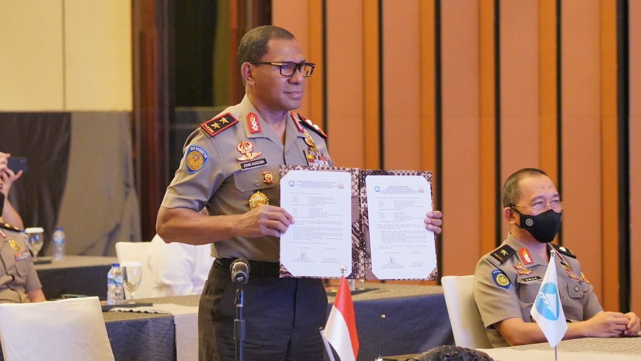 Kontribusi tersebut diserahkan secara virtual oleh Kepala Hubungan Internasional, Kepolisian Republik Indonesia, Inspektur Jenderal Polisi, Johni Asadoma kepada Direktur Jenderal MSG yang baru, Leonard Louma. Dalam pertemuan tersebut, dilakukan transfer dana sebesar seratus ribu Dolar AS, dari Polri ke Sekretariat MSG.
