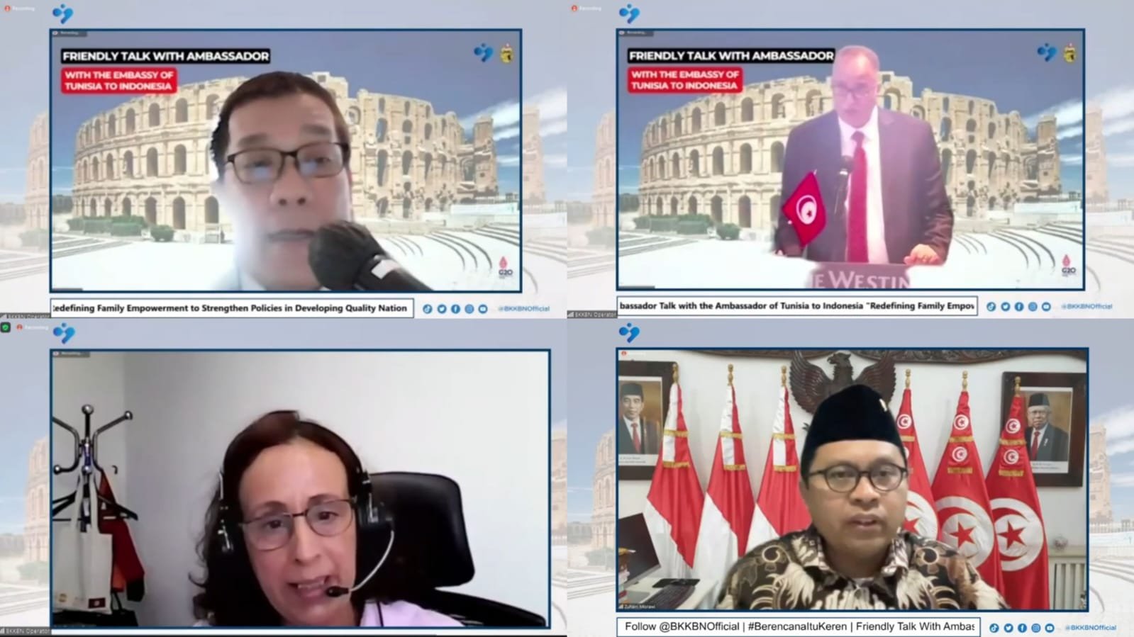 BKKBN dan Keluarga Berencana Nasional dan Kependudukan Tunisia ( ONFP ) telah Nota Kesepahaman ( MoU ) dengan ruang lingkup Rencana Keluarga, BKKBN juga akan mengundang ONFP untuk berbagi praktik terbaik dalam membangun bangsa yang berkualitas melalui Keluarga Be, Pembangunan Keluarga, Program pengurangan populasi dan stunting, ” kata Kepala BKKBN Dr.(HC) dr. Hasto Wardoyo, Sp.OG (K) pada sambutannya yang dalam hal ini diwakili oleh Deputi Bidang Pelatihan, Penelitian dan Pengembangan BKKBN Prof. drh. Muhammad Rizal Martua Damanik, MRepSc, PhD.
