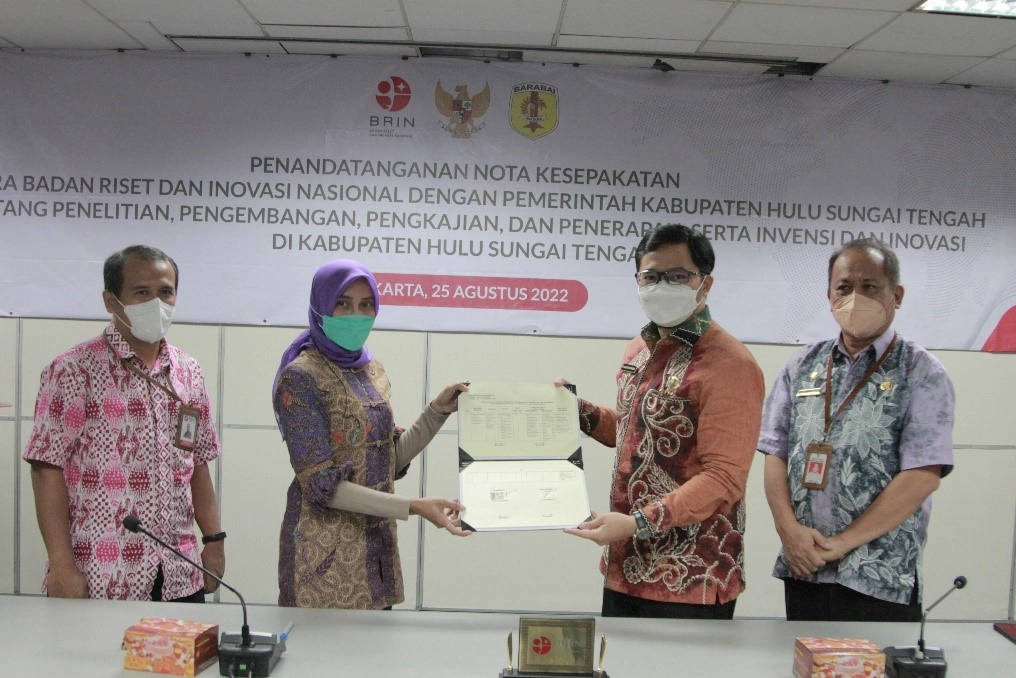 Untuk itulah, Badan Riset dan Inovasi Nasional (BRIN) melalui Deputi Bidang Pemanfaatan Riset dan Inovasi, menjalin kerja sama riset tentang Penelitian, pengembangan, Pengkajian, dan Penerapan serta Invensi dan Inovasi di Kabupaten Hulu Sungai Tengah, Provinsi Kalimantan Selatan. Kerja sama ditandai dengan penandatanganan antara Plt. Deputi Bidang Pemanfaatan Riset dan Inovasi BRIN Hendrian, dengan Bupati Hulu Sungai Tengah Aulia Oktafiandi, di Jakarta pada Kamis (25/08).