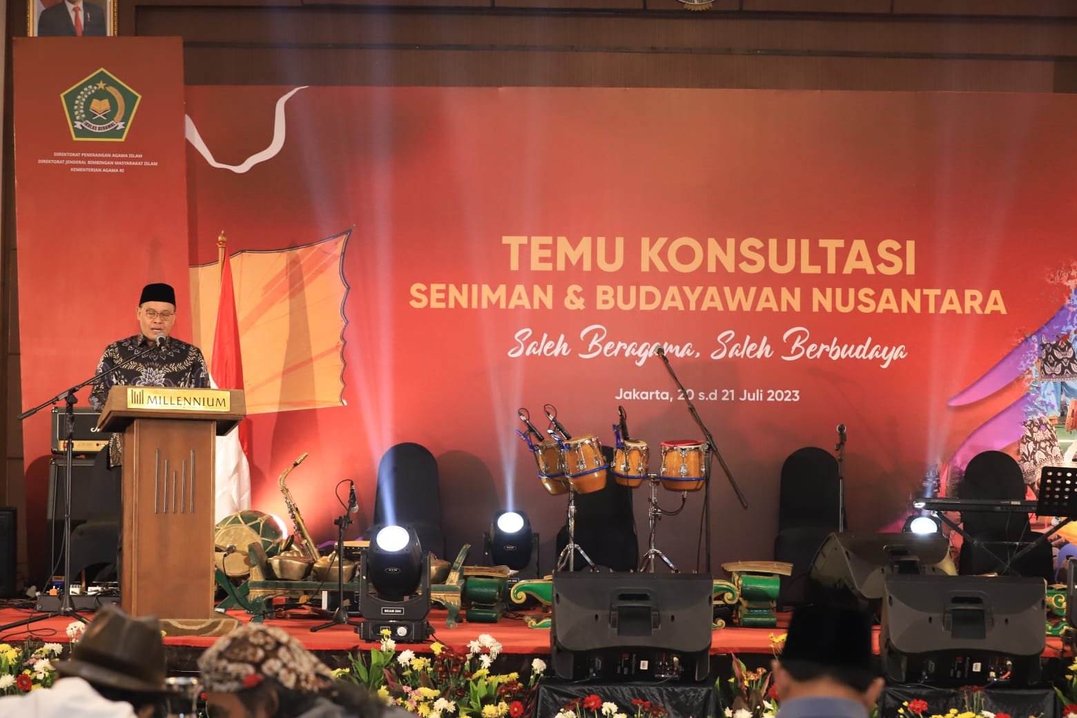 Temu Konsultasi Seniman Budayawan Nusantara ini, menurut Wamenag menjadi momentum untuk membangun kesalehan beragama agar tidak tercerabut dari identitas kebangsaan Indonesia yang multikultural.