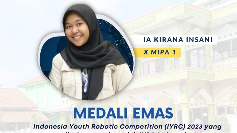 Ia Kirana Insani, siswa madrasah ini meraih medali Emas Indonesia Youth Robot Competition (IYRC) 2023.