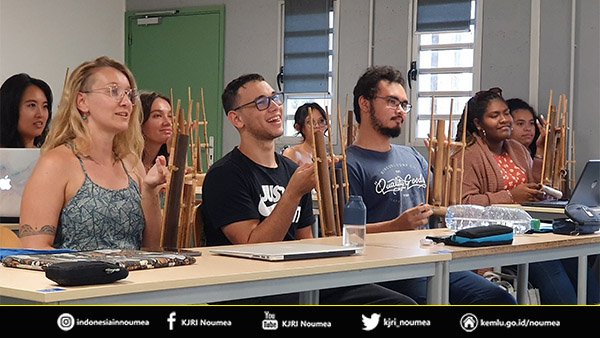 Mengenalkan angklung merupakan salah satu kegiatan dalam program belajar bahasa Indonesia di Universitas New Caledonia . Selain bermain angklung, kuliner nusantara juga menjadi salah satu materi mengenalkan budaya Indonesia kepada para mahasiswa.[***]