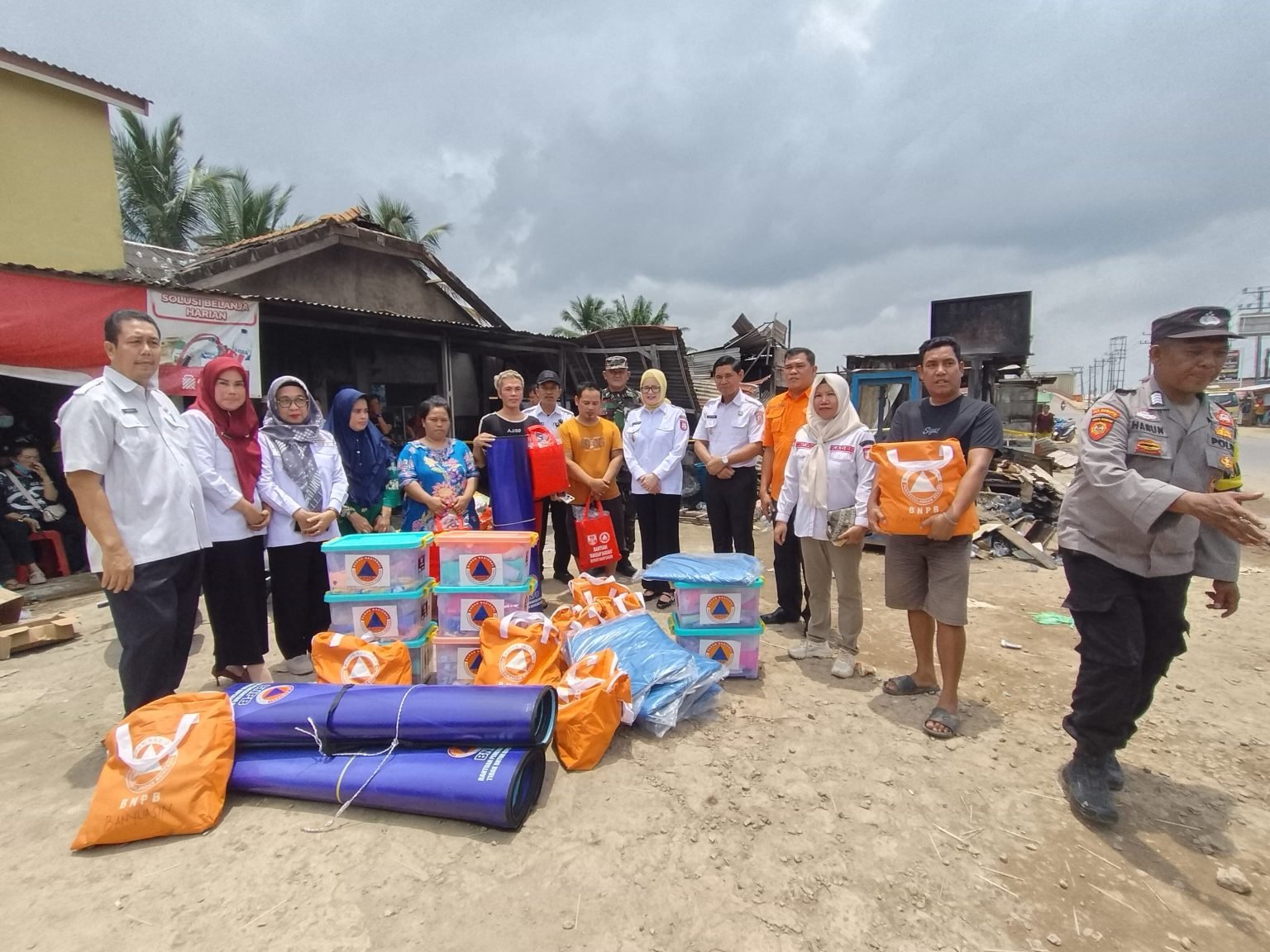 selimut, makanan siap saji dan terpal yang masing-masing kartu keluarga mendapatkan 2 paket. Selain bantuan Pemkab, turut serta memberikan bantuan PT. Buyung Putra Pangan berupa uang dan beras.