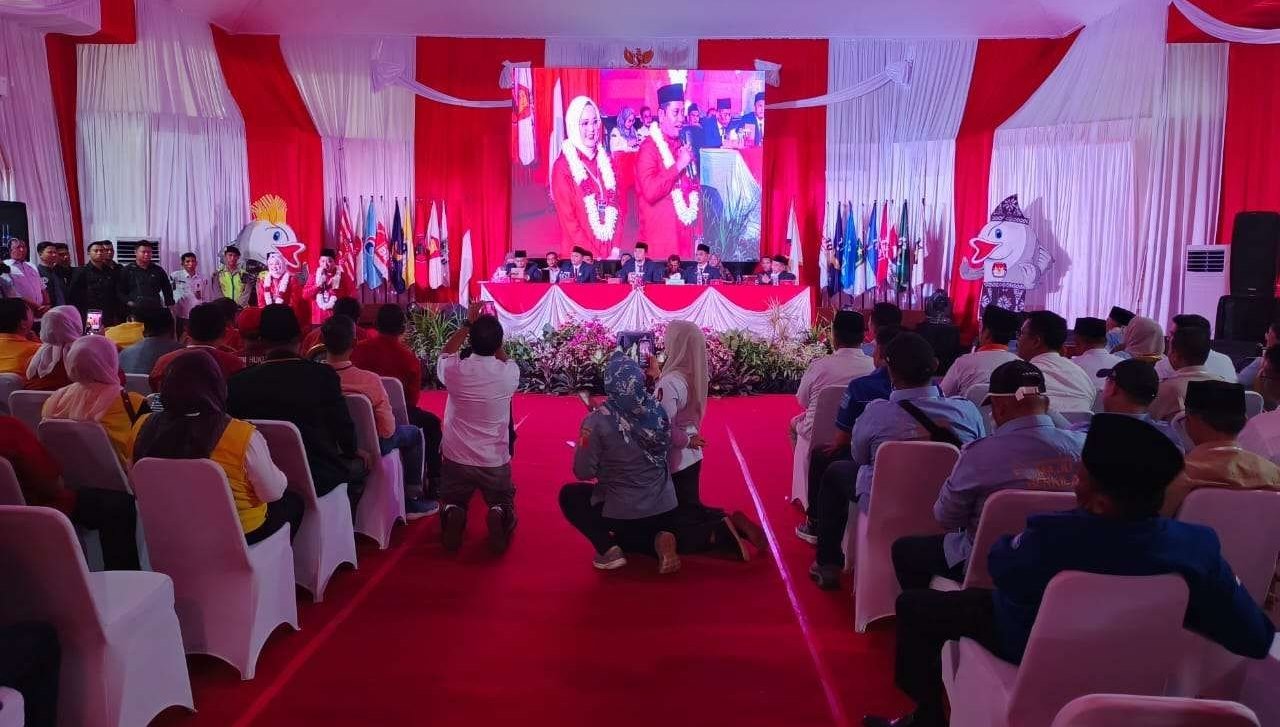 “Tadi telah dilaksanakan penetapan nomor urut. Untuk paslon nomor urut 1 Askolani-Netta, sedangkan nomor urut 2 yaitu Slamet-Alfi,” ujar Aang