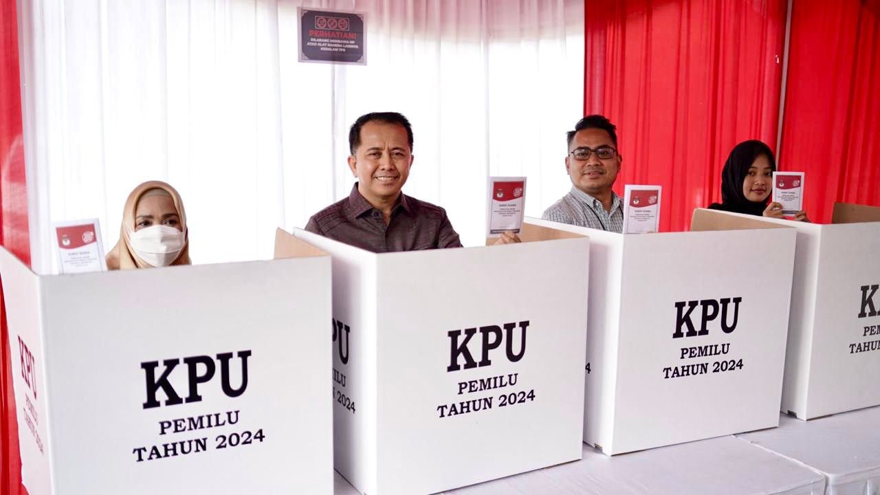 Pingintau.id – Usai melakukan pemantauan ke sejumlah titik Tempat Pemungutan Suara (TPS) di Kota Palembang, Penjabat (Pj) Gubernur Sumatera Selatan (Sumsel) didampingi Pj Ketua Tim Penggerak Pemberdayaan dan Kesejahteraan Keluarga (TP PKK) Tyas Fatoni menggunakan hak suaranya dalam Pemilihan Umum (Pemilu) 2024. Mereka menggunakan hak pilihnya di TPS 35 yang berlokasi di Jl. Lingkar Istana RT 52, RW 11 Kelurahan Demang Lebar Daun, Kecamatan Ilir Barat 1 Palembang, Rabu (14/02/2024).