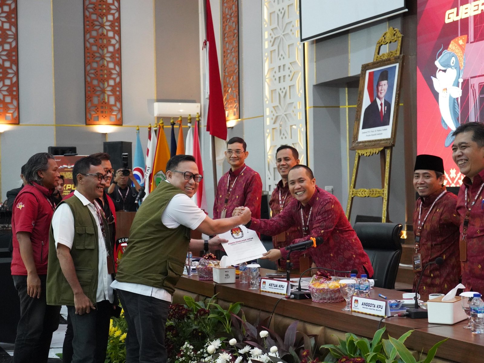 “Dengan mengucap Bismillah hasil rekapitulasi perolehan suara setiap kabupaten/kota Pilgub Sumsel 2024 bisa disahkan, Bismillahirrohmanirrohim sah,” ujar Andika sambil mengetok palu.