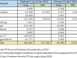 Pada Tahun 2022 daerah yang menjadi tanggung jawab Pusri untuk pupuk urea dan NPK bersubsidi dengan rincian berdasarkan tabel berikut :