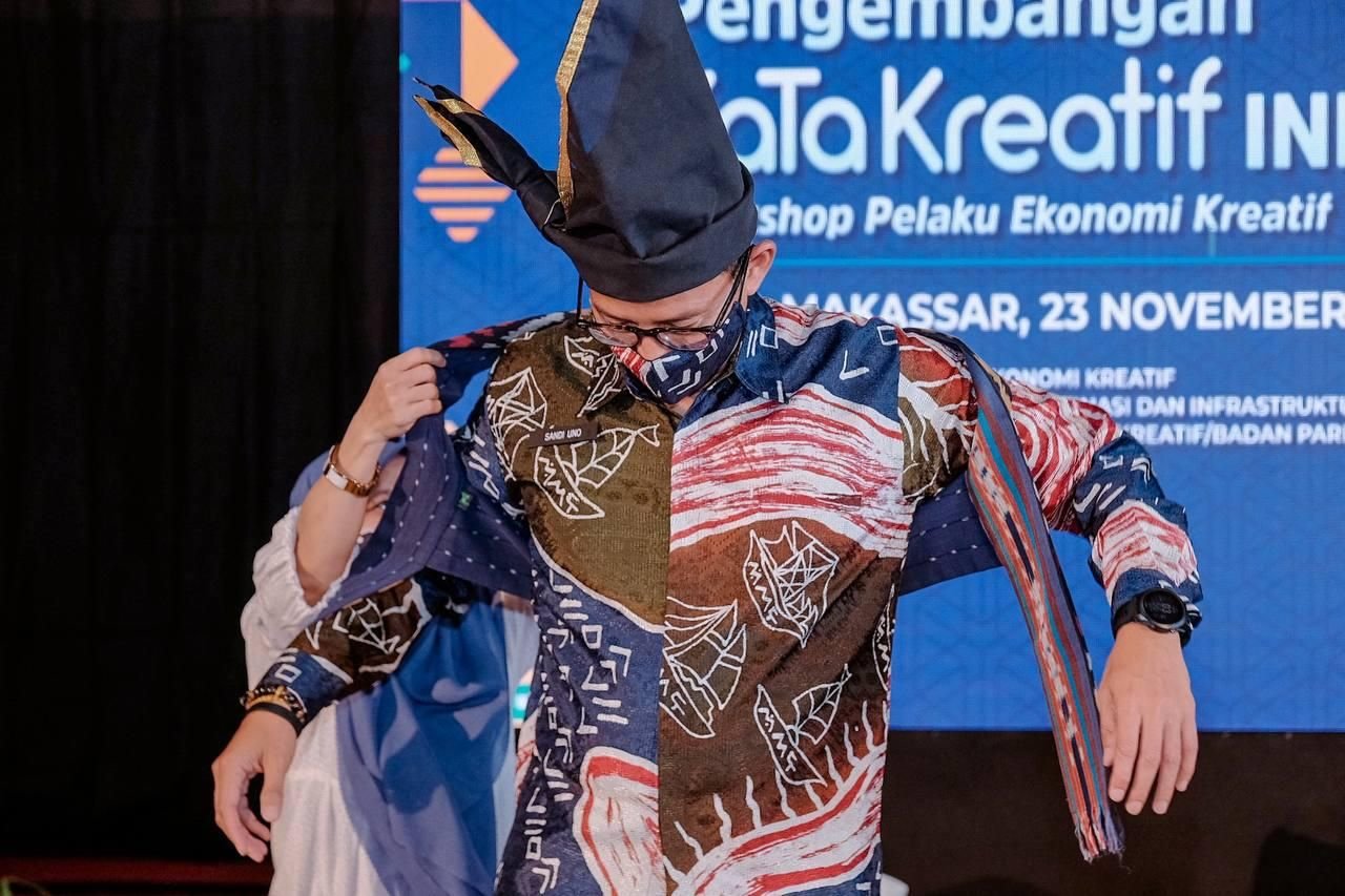 Dalam Workshop Kabupaten/Kota (KaTa) Kreatif di Ombak Cafe, Makassar, Selasa (23/11/2021), Sandiaga menyampaikan Makassar merupakan salah satu kota yang menjadi episentrum ekonomi kreatif di Indonesia Timur, terutama dalam hal industri fesyen.