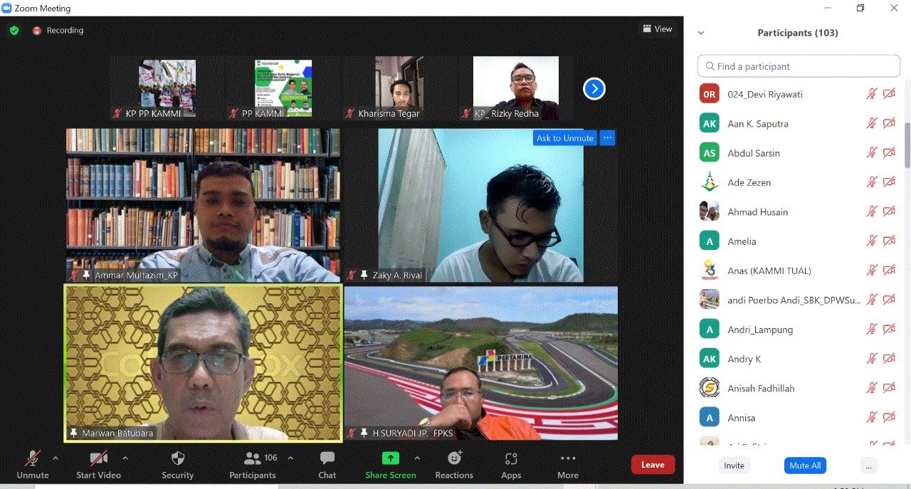 Pingintau.id, Kesatuan Aksi Mahasiswa Muslim Indonesia (KAMMI) menggeler diskusi virtual bertajuk, “UU IKN (Ibu Kota Negara): Benarkah Berpotensi Inkonstitusional?”, Selasa (8/2/2021). Dengan narasumber diskusi yaitu Marwan Batubara (Direktur IRESS dan sekretaris PNKN) dan Suryadi Jaya Purnama (Anggota DPR RI/ Pansus RUU IKN).