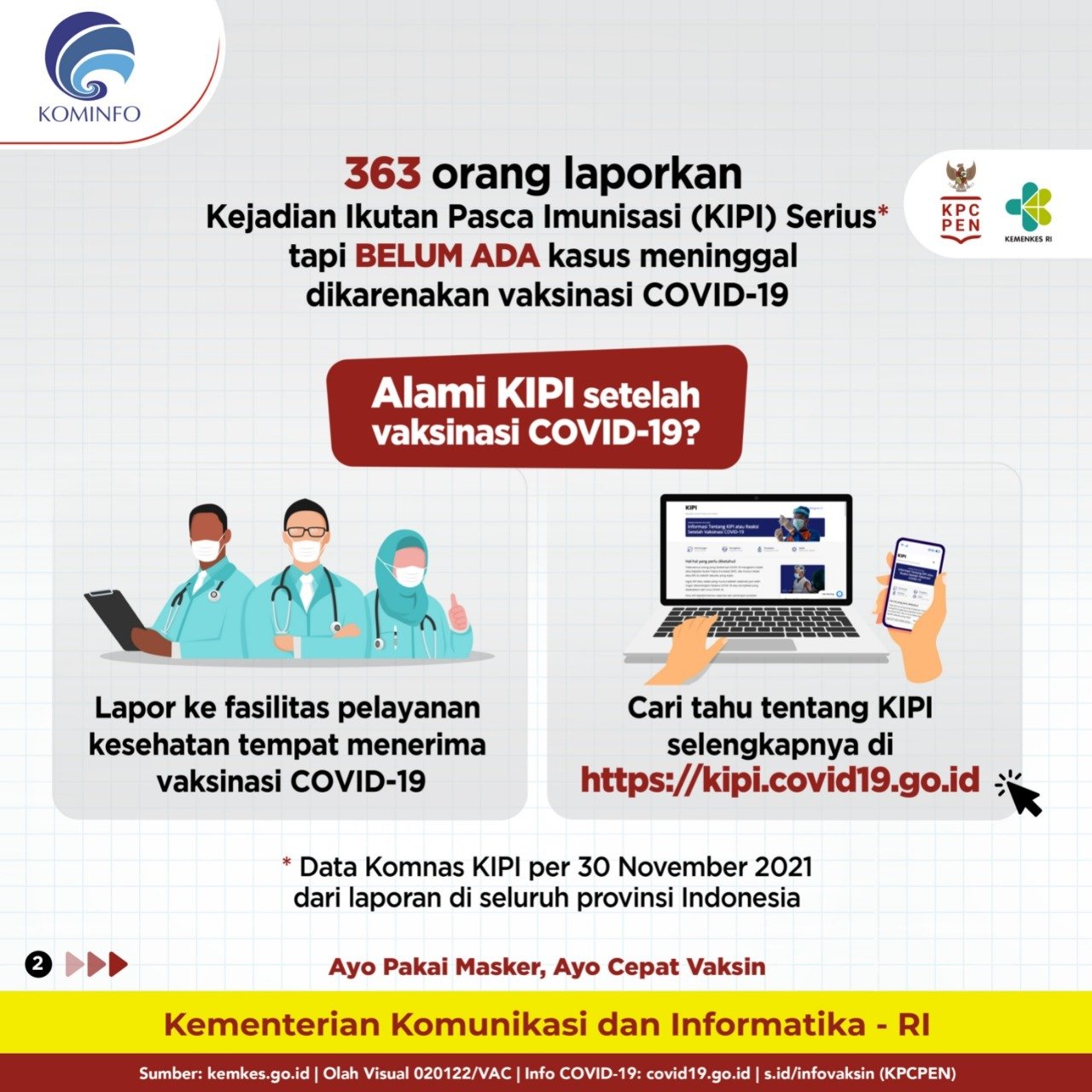 Cari tahu tentang KIPI selengkapnya di https://kipi.covid19.go.id