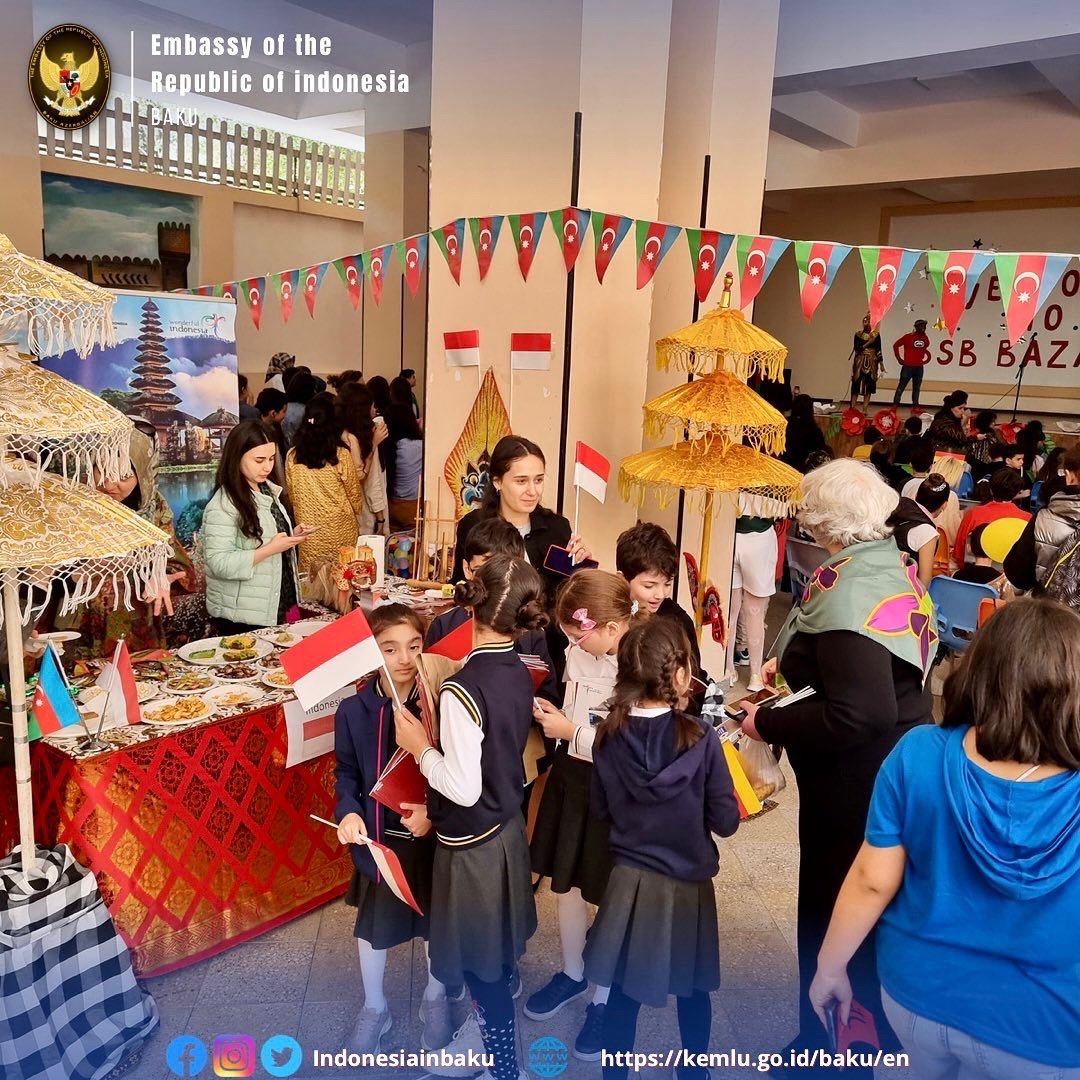 Pingintau.id, Baku, Azerbaijan – Memperkenalkan Indonesia kepada masyarakat setempat sejak dini, KBRI Baku turut berpartisipasi pada “the 4th International Bazaar” yang diselenggarakan oleh British School di Baku belum lama ini.