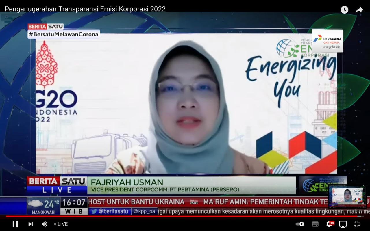 Vice President Corporate Communication Pertamina Fajriyah Usman menyampaikan apresiasi dan ucapan terima kasih atas penghargaan Emisi Korporasi 2022.