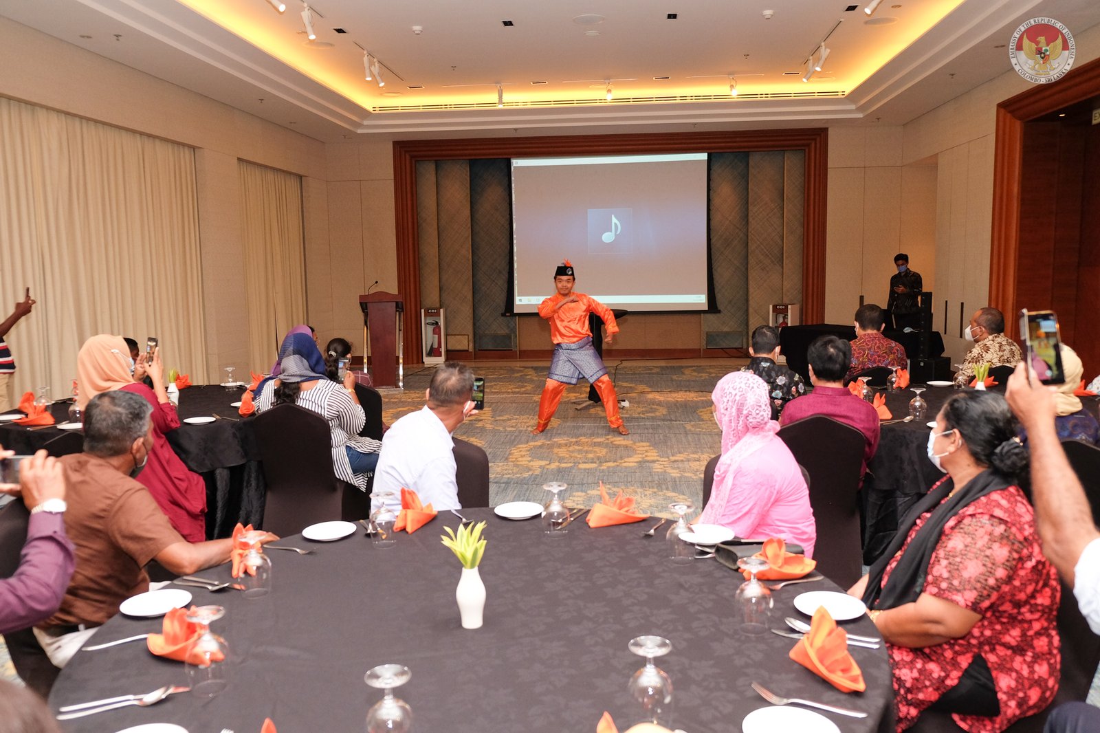 Pada acara tersebut KBRI Colombo menampilkan dua tarian yaitu tari Zapin dan tari Piring serta penampilan angklung. Saat penampilan angklung, para hadirin turut secara bersama-sama memainkan angklung.[***]